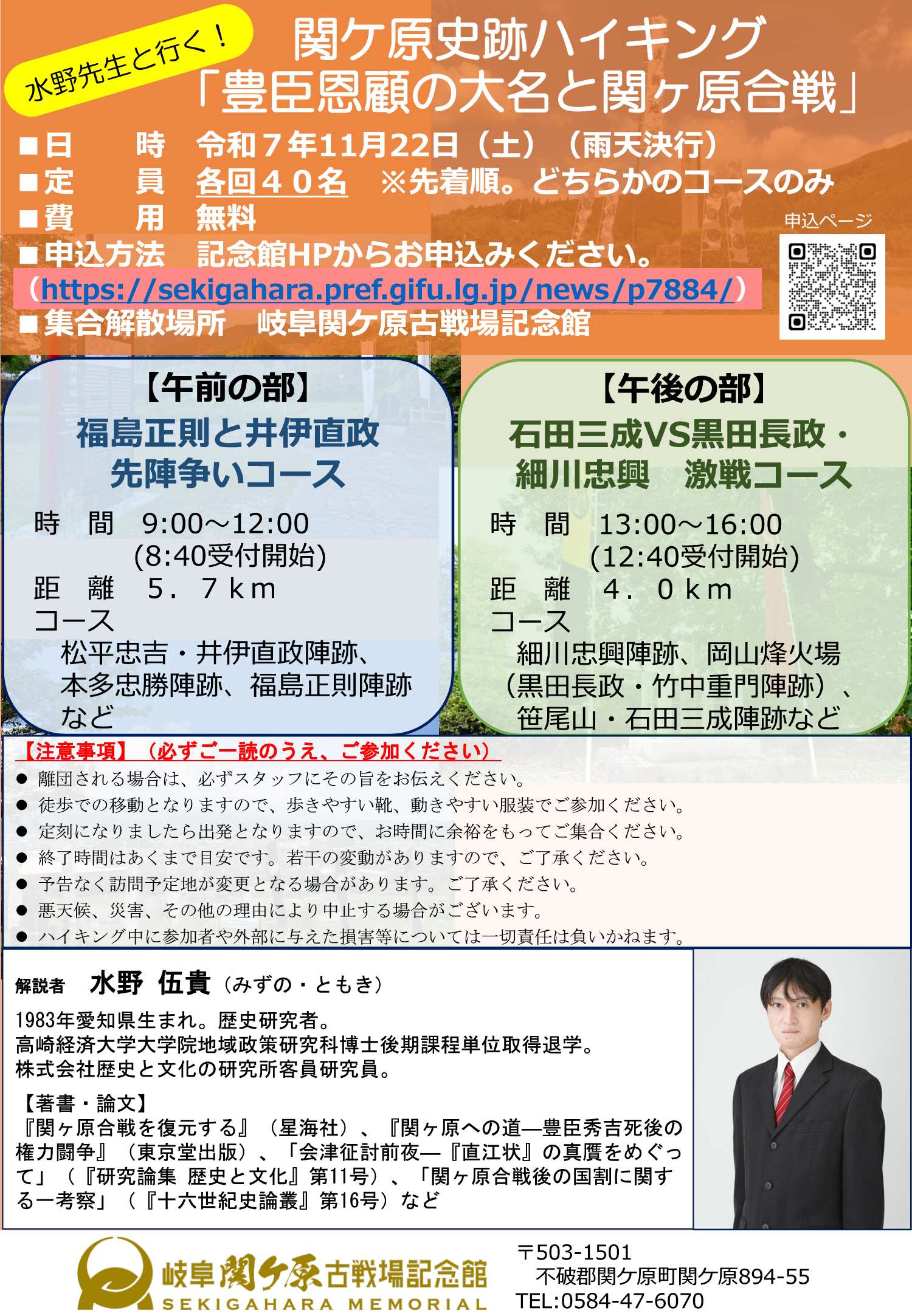 歴史研究者水野伍貴氏と行く!関ケ原史跡ハイキング「豊臣恩顧の大名と関ケ原合戦」を開催します【参加者募集】