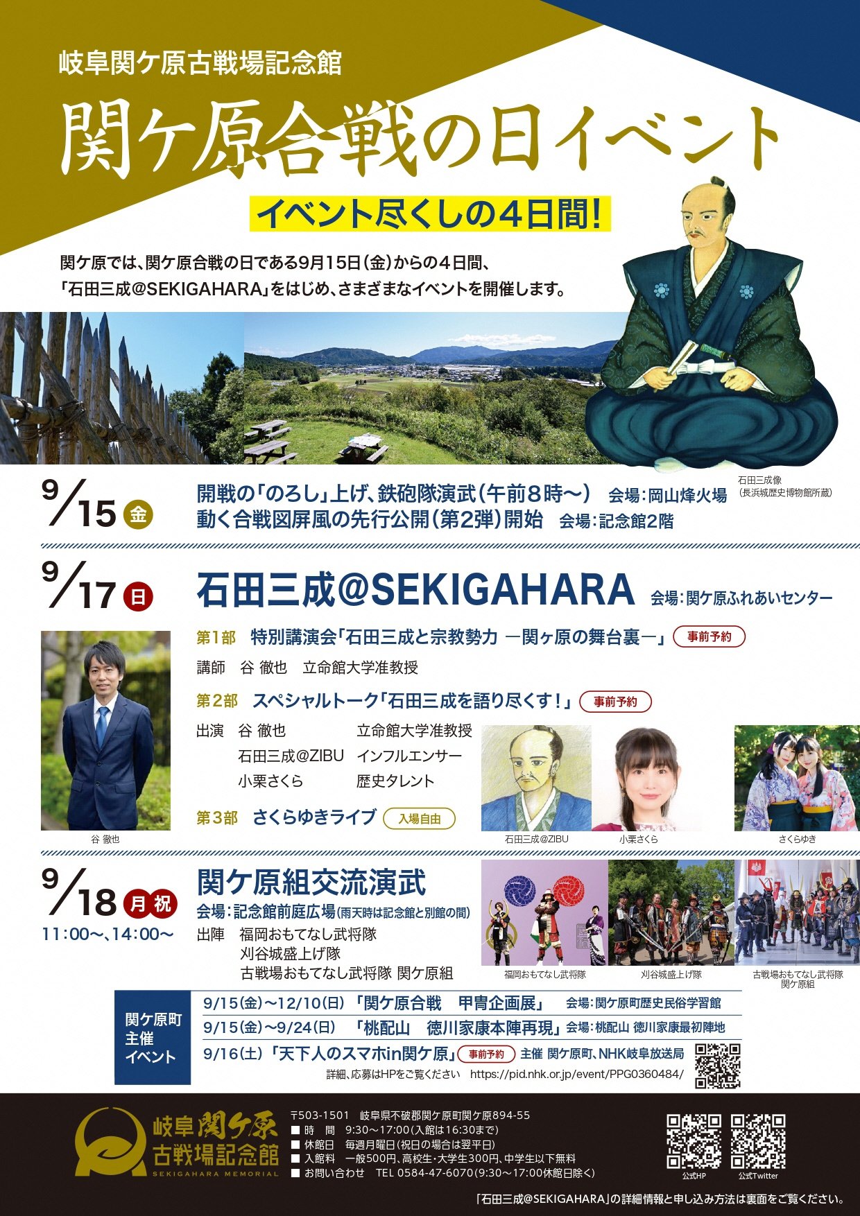 関ケ原では関ケ原合戦の日である9月15日(金)からの4日間、「石田三成@SEKIGAHARA」をはじめ、様々なイベントを開催します。